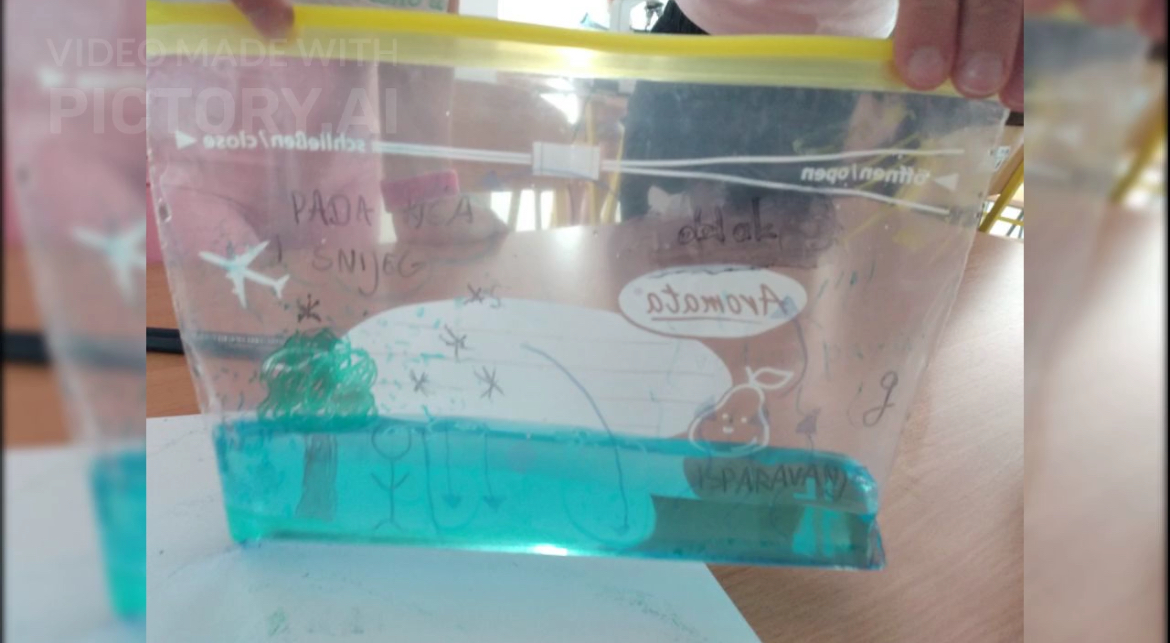 Kroz aktivno čitanje, raspravu i crtanje modela na prozirne vrećice, učenici su učili o fotosintezi, kruženju vode u prirodi i agregatnim stanjima. Poseban naglasak stavljen je na obnovljive izvore energije, što su istražili gledanjem edukativnog videa o solarnoj energiji.